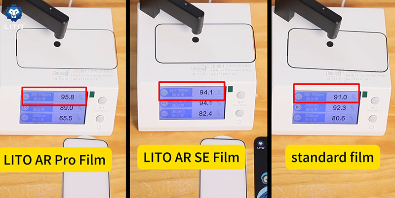 Onlangs heeft ons laboratorium een grondige studie uitgevoerd ll vergelijkingstest tussen LITO AR PRO, LITO AR SE , en een gewone beschermfolie van gehard glas. Het doel: laten zien hoe AR-coating de visuele prestaties daadwerkelijk verandert.